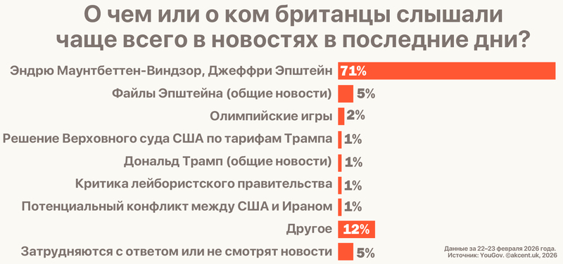 Еще одна громкая новость недели также связана с бывшим принцем: министр обороны Великобритании Джон Хили потребовал провести внутреннее расследование по заявлениям о том, что брат короля мог использовать базы королевских ВВС для встреч Эпштейном. Проверить эти данные попросил и бывший премьер-министр Соединенного Королевства Гордон Браун.