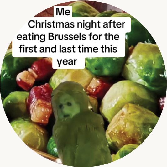 Кстати, о брюссельской капусте. Как бы ни менялись рождественские привычки, этот овощ остается неизменной частью классического праздничного застолья, наряду с индейкой, клюквенным соусом, грейви и запеченным картофелем. Проблема лишь в том, что брюссельскую капусту, кажется, не любит почти никто. Каждый декабрь интернет снова и снова напоминает об этом парадоксе. Мемы честно фиксируют коллективный опыт: капуста появляется на столе ежегодно, но также стабильно остается нетронутой и идет в утиль. Самый лаконичный из мемов формулирует ситуацию предельно точно: «Brussels sprouts at Christmas dinner, uneaten since 1843» («Брюссельская капуста на рождественском ужине, не притрагивались с 1843 года»). Ирония в том, что, несмотря на все попытки реабилитировать овощ (запекать с беконом, медом или бальзамиком, мелко рубить в салаты), он продолжает выполнять скорее ритуальную, чем гастрономическую функцию, а Клуб ненавистников брюссельской капусты продолжает расти.